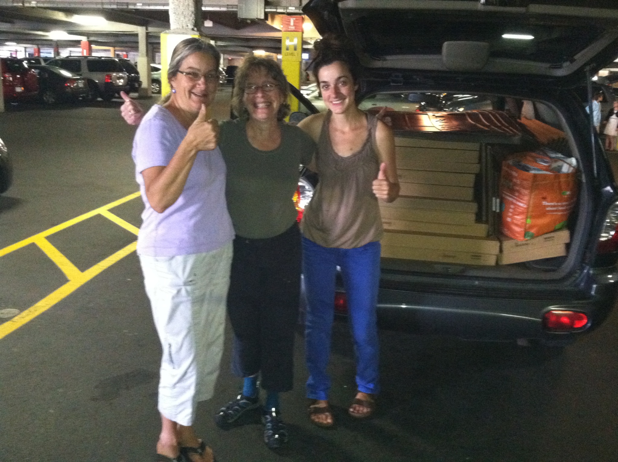 Well we did it! What started out as an ordinary yet insane day closed with pizza, beer, good friends and MOM in my backyard….AND the unloading of about 2000 lbs of kitchen cabinets!