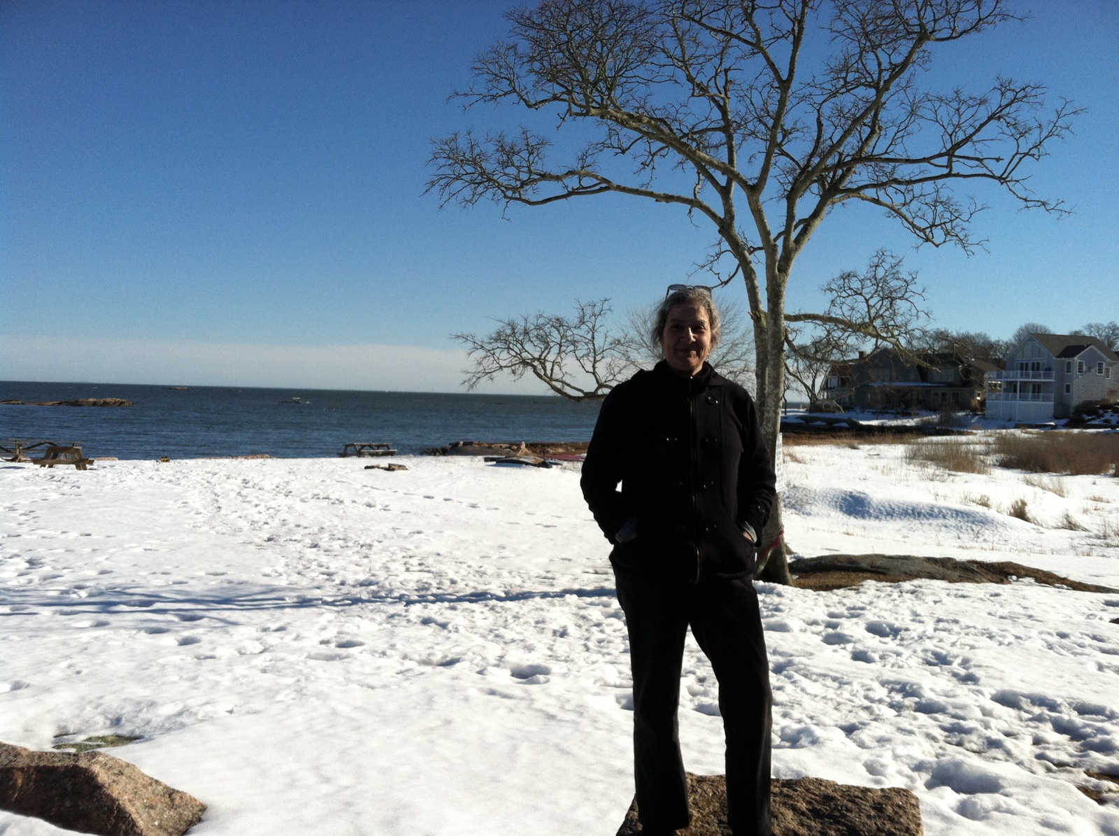 After our acupuncture treatment Stefania and brought Nandi to the train station in New Haven and then found our way to the Stony Creek town dock to have a little picnic looking out on The Thimble Islands and Long Island Sound. It was a beautiful, sunny day in the low 50s and we smiled at the contrast of the sound and the snow that met the water.