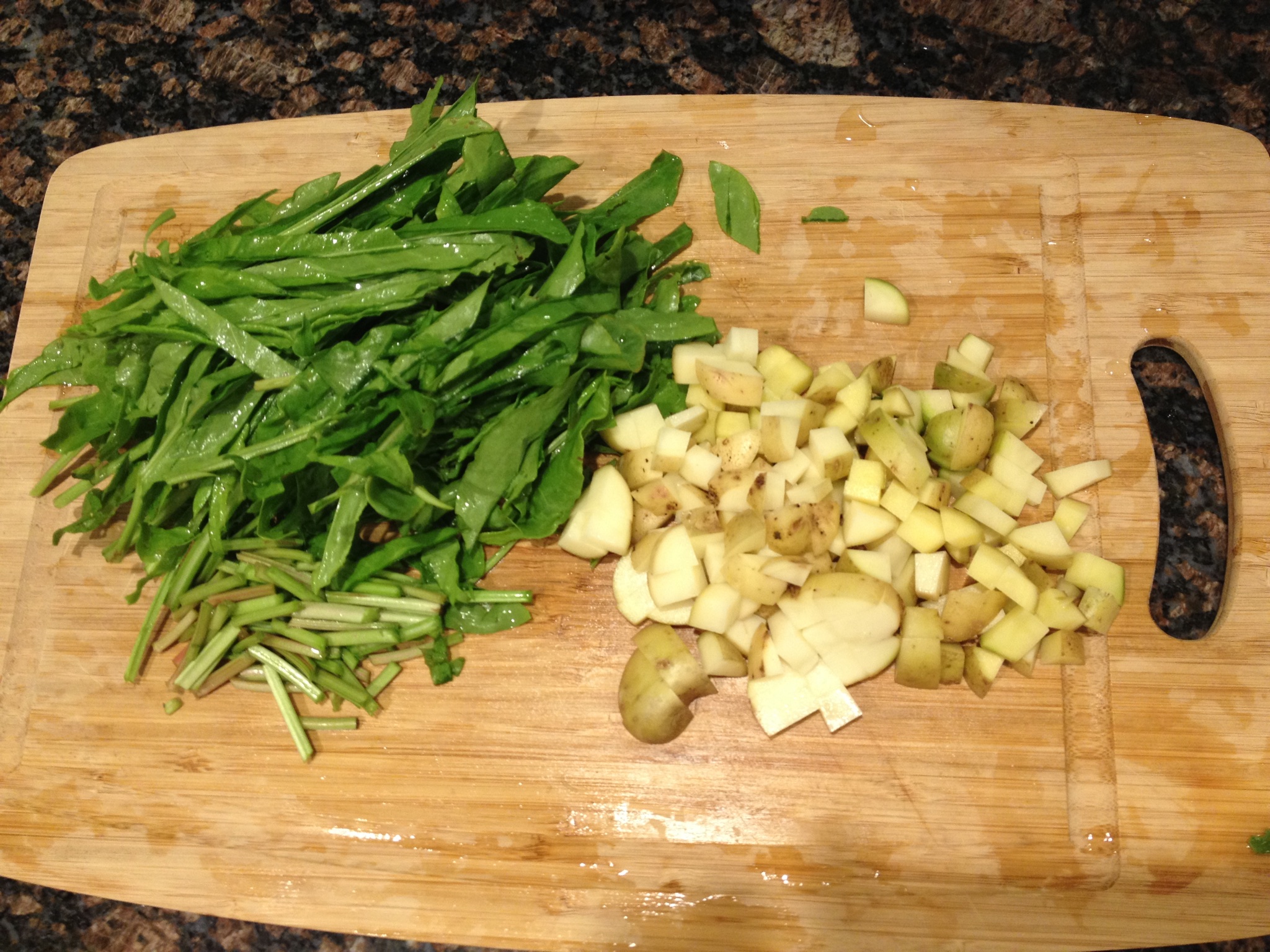 Cut sorrel into ribbons and chop potato into small chunks