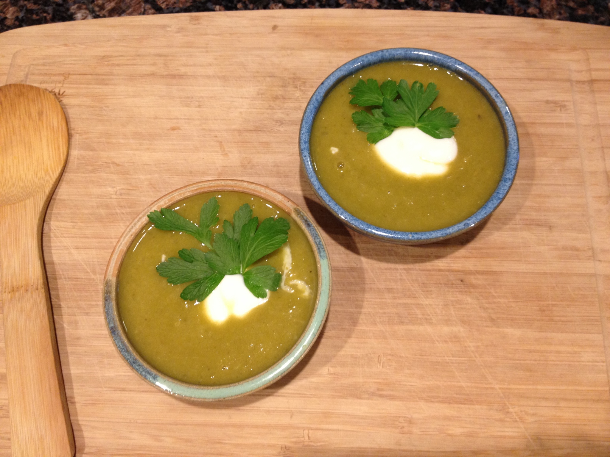 I adjusted this recipe from Mother Earth News http://www.motherearthnews.com/real-food/sorrel-soup-recipe-zmrz1301zmat.aspx#axzz3FHXPZbNK, I swapped out butter for Earth Balance.